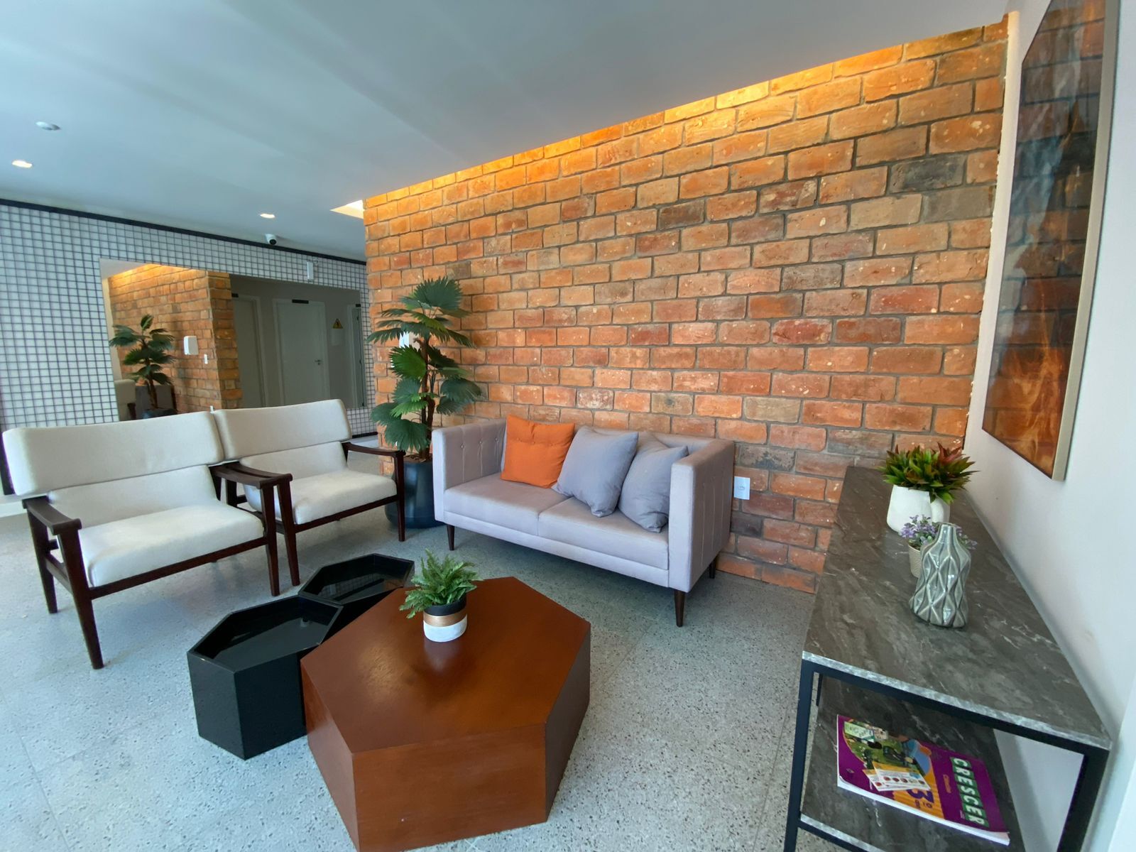 Teto todo em gesso e piso porcelanato