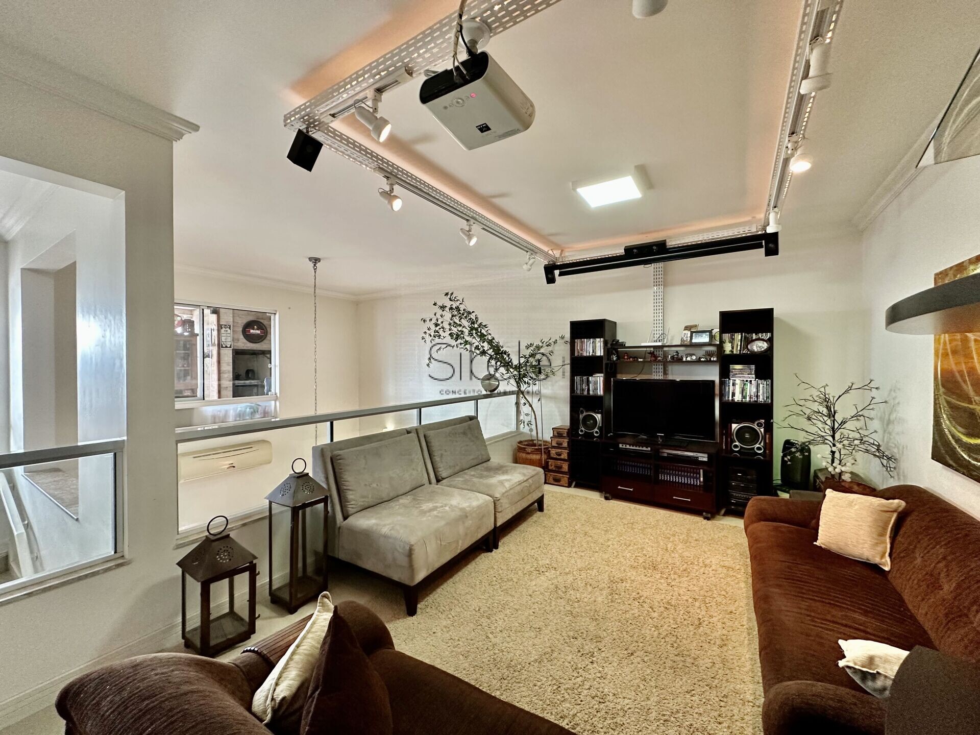 Contém sala de estar e jantar, sala de TV no mezanino, 2 sacadas com churrasqueiras, 5 dormitórios, sendo 3 suítes, banheiro social, banheiro de serviço, cozinha, área de serviço, 3 vagas de garagem individuais de garagem e Home box.